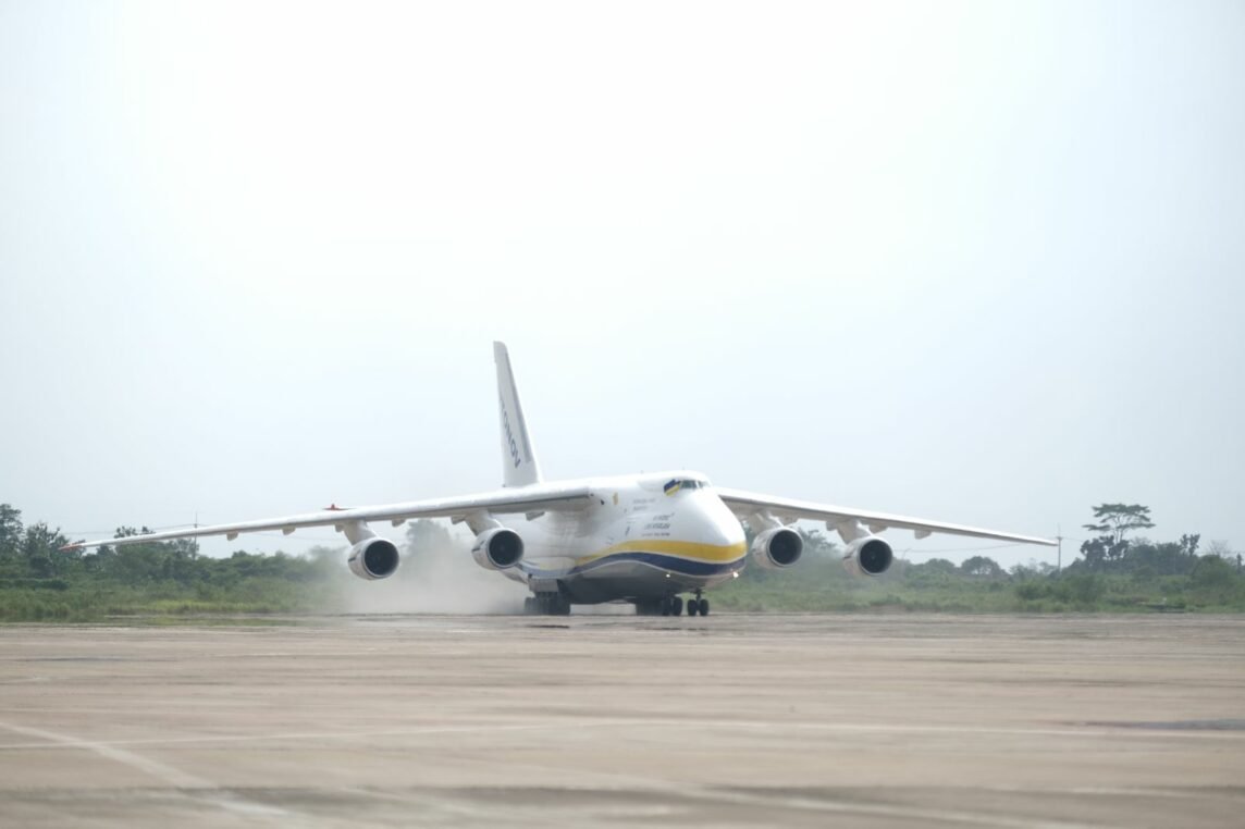 Charter Flight Antonov AN124 -100 Import Machine TUL USA to PLG Sultan Mahmud Badaruddin II International Airport